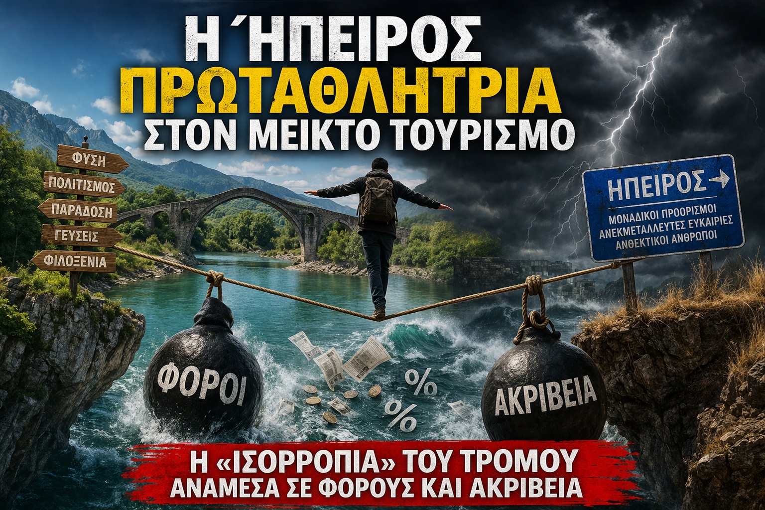 Όταν τα νούμερα του ΙΝΣΕΤΕ βαφτίζουν «ισορροπία» την επιβίωση με το ζόρι, τότε η στατιστική επιστήμη σηκώνει τα χέρια ψηλά. Η Ήπειρος εμφανίζεται ως η «πρωταθλήτρια» του μεικτού τουρισμού, με το 69% των καταλυμάτων να παλεύει να κρατήσει ζωντανό το ενδιαφέρον Ελλήνων και ξένων, όμως πίσω από τη βιτρίνα της «χρυσής τομής» κρύβεται μια σκληρή πραγματικότητα: οι μικρές οικογενειακές επιχειρήσεις της περιοχής μας λειτουργούν ως αιμοδότες ενός συστήματος που τις πνίγει στη φορολογία και τον αθέμιτο ανταγωνισμό. Σύμφωνα με το typolitics.gr, η δήθεν σταθερότητα του 2025 είναι το αποτέλεσμα της υπερπροσπάθειας των επαγγελματιών που αρνούνται να παραδώσουν τα κλειδιά στις…